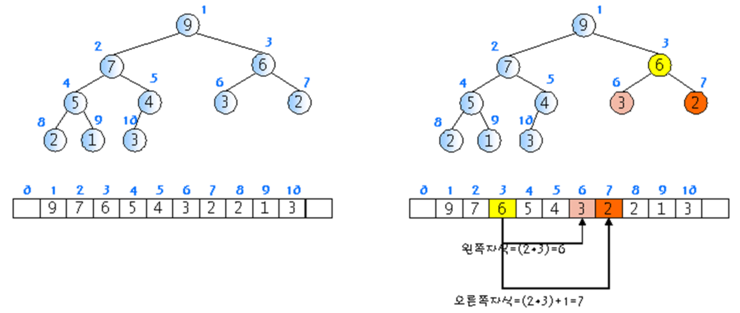 - 오른쪽 자식 노드 index = (부모 노드 index) * 2 + 1